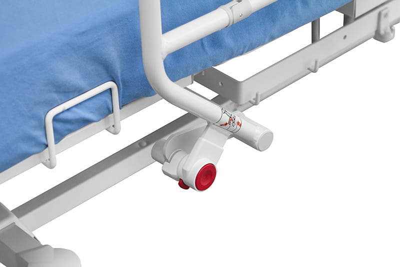 The side rails have smaller gaps between the rails than standard hospital beds and do not create gaps at the head-end of the bed. It is also possible to add a plastic protector to the side rails to maximise patient protection. The single collapsible side rails can be easily lowered at the bed sides.