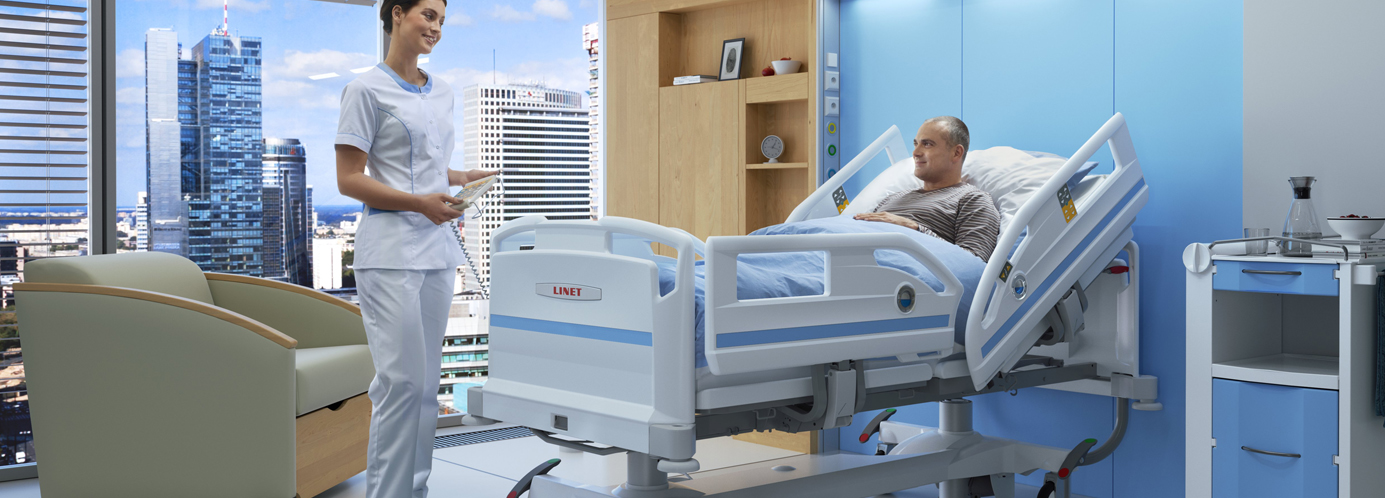 Das Klinikbett eleganza 2 setzt Maßstäbe in der Akutversorgung mit in seinem Seitensicherungskonzept, der Verarbeitungsqualität und seinem Design. Es verfügt über vielfältige Funktionen, die universell auf unterschiedlichen Stationen einsetzbar sind.