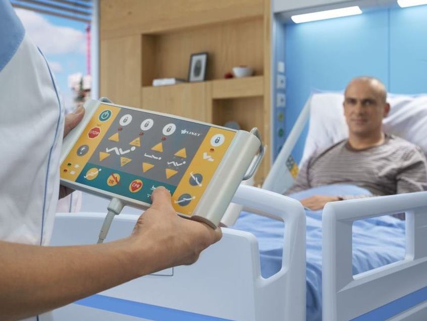 eleganza 2 kann anspruchsvolle Pflegeaufgaben unterstützen und schafft dank seines modernen Designs eine angenehme Atmosphäre für Patienten.