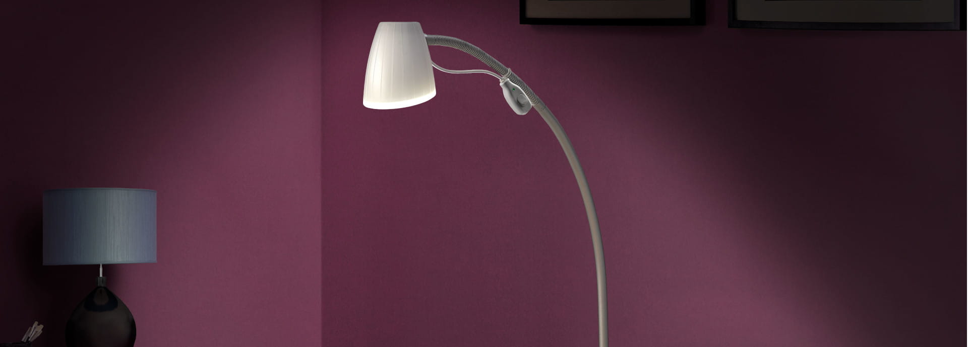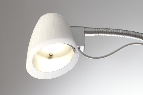 Ausgestattet mit einem schwenkbaren Arm ermöglicht die Leuchte die genaue Positionierung des Lichtpunktes in der Nähe des Objekts, welches beleuchtet werden soll.