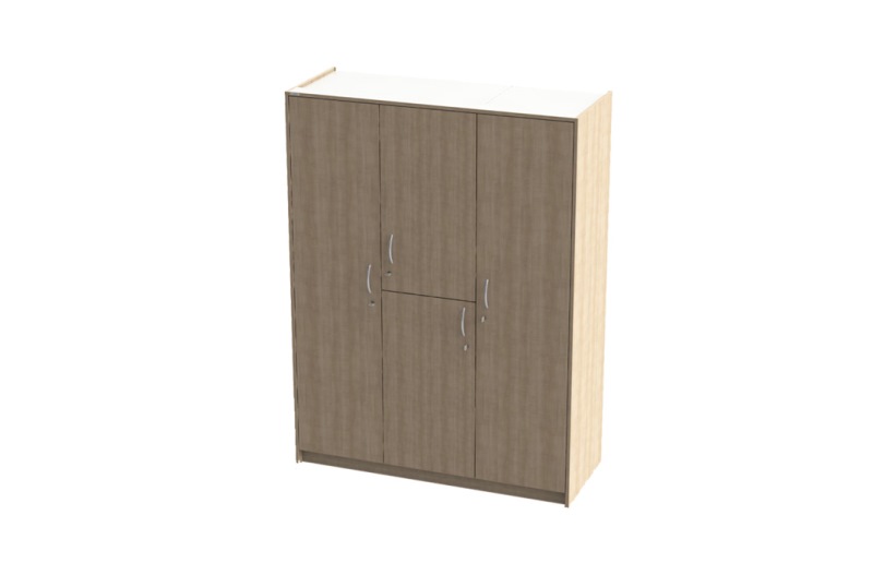 Two-person wardrobe with 4 doors, clothes rail and shelves Thanks to the 4 doors with ergonomic 128 mm segment arc handles, the resident can easily access all areas of the wardrobe. The integrated drilled soft-close reduces the noise level when closing the doors. The wardrobe is available with 1 or 2 valuables compartments, which on request can also be installed at a height optimally accessible for persons in a wheelchair.